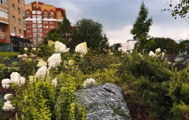 Композиция, состоящая из камней, древесных панно и травянистых растений, стала настоящим украшением района.«В отличие от строгих геометрических посадок, она вдохновлена естественными ландшафтами, где растения свободно переплетаются и дополняют друг друга, создают динамичную картину, меняющуюся от сезона к сезону», — отмечают специалисты.